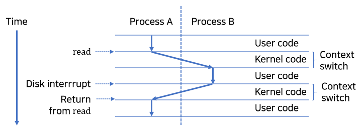 → OS는 이들의 프로세스를 빠르게 교체하며 CPU를 돌려줌