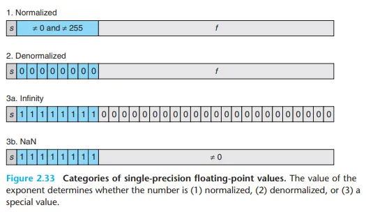| 정규화 수 | 00000001 (1)~ 11111110 (254) | -126 ~ +127 | 임의의 값 | 1.f × 2^{e-127} |