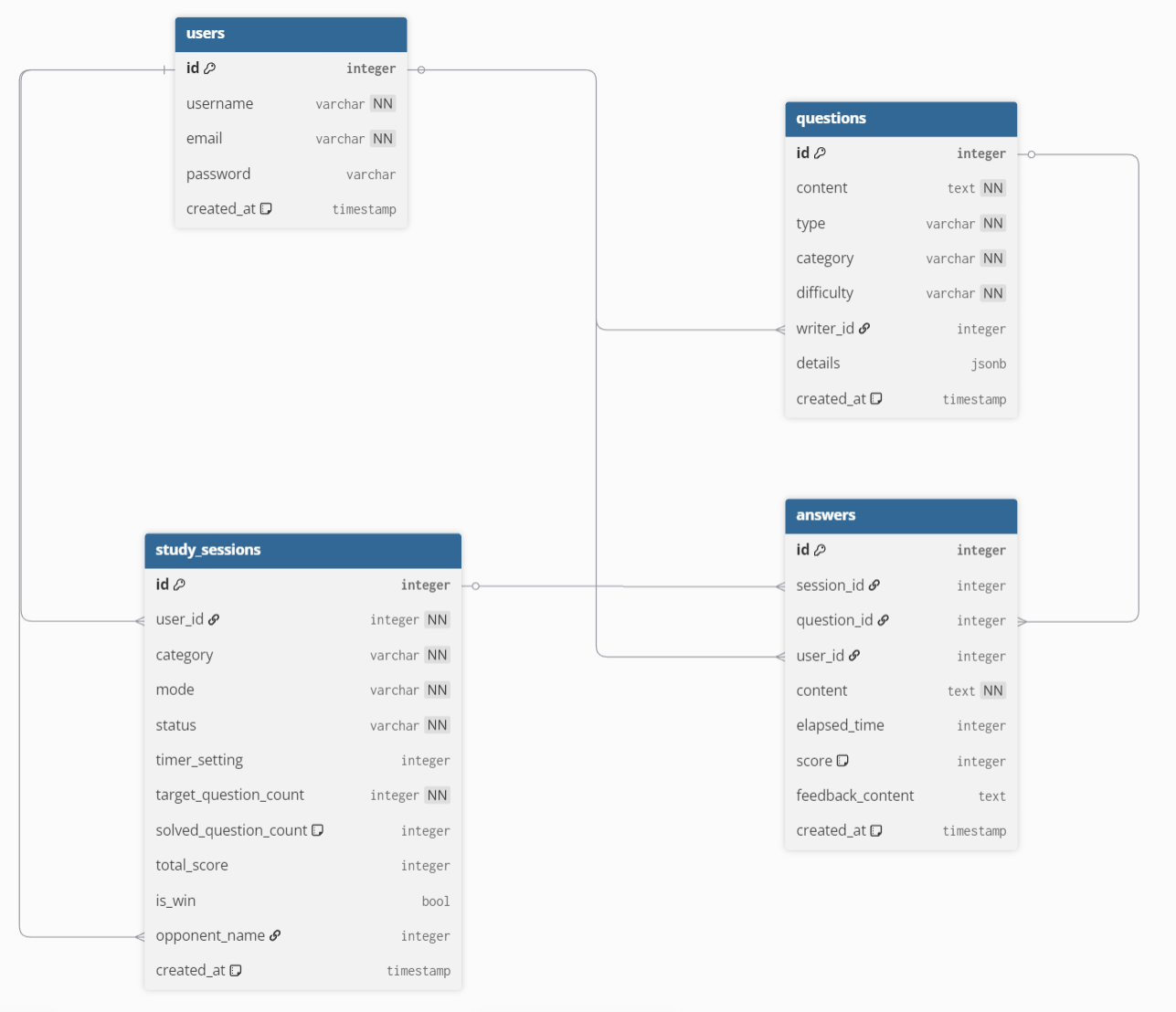 mode varchar [not null] // 'INTERVIEW', 'BATTLE'