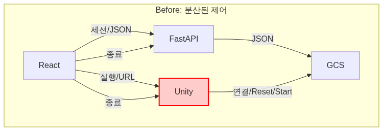 세션 관리 주체(FastAPI) ≠ 실제 리소스 제어 주체(React, Unity)