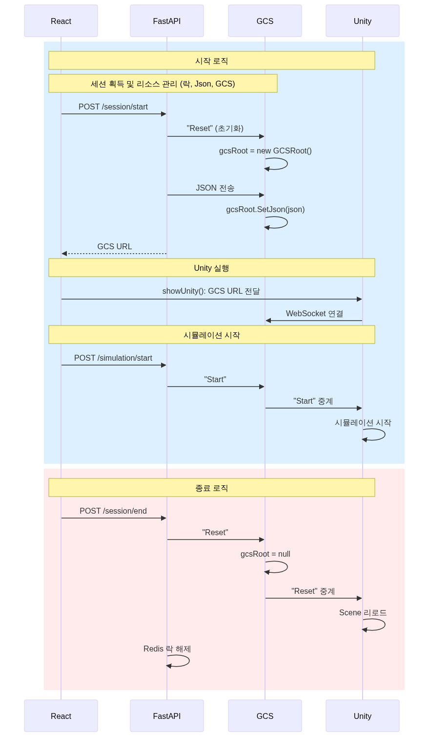 위의 다이어그램에서도 볼 수 있지만 Lock을 획득하고 세션을 시작하는 것은 클라이언트의 요청을 받은 FastAPI 측이지만, GCS 서버를 제어하고, 시뮬레이션을 시작하는 건 클라이언트의 요청을 받은 Unity입니다.